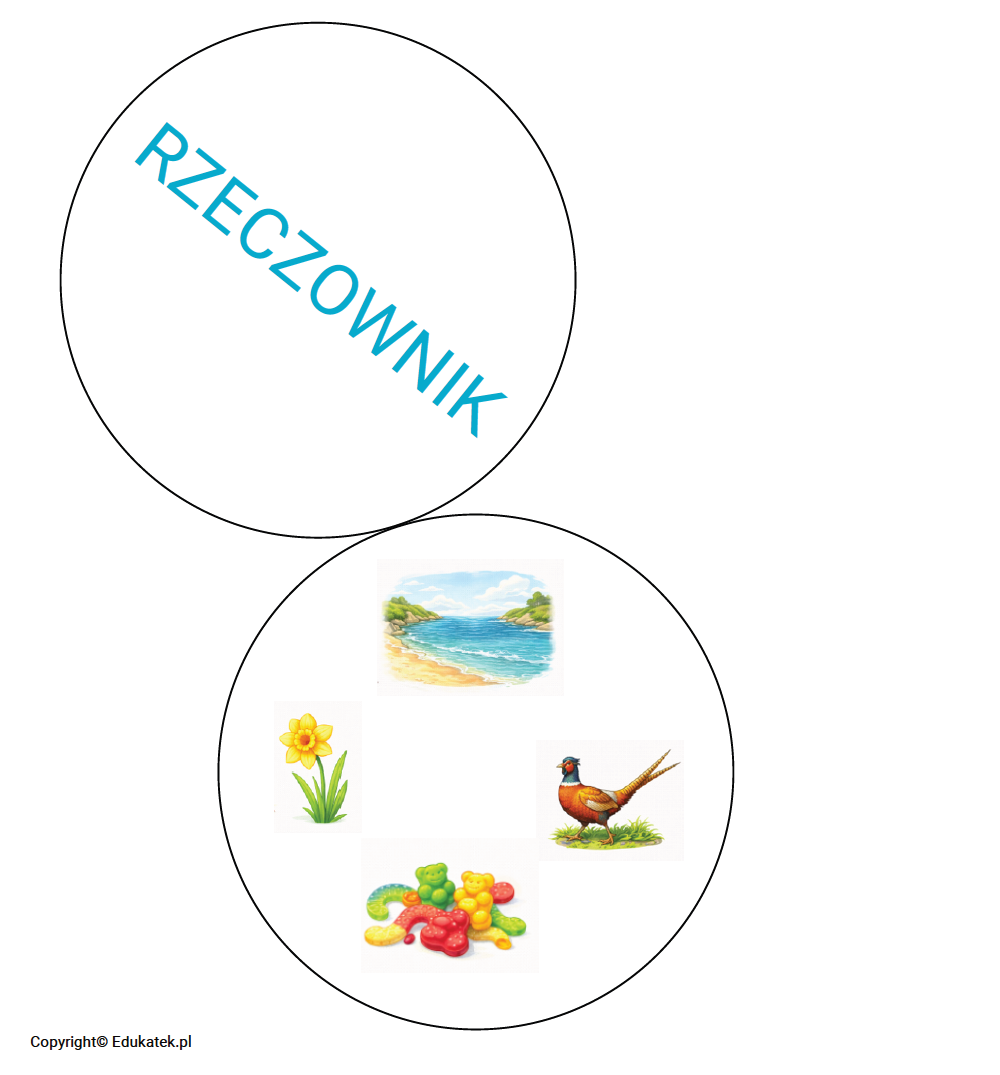 Dzięki tej zabawie dzieci doskonalą rozpoznawanie części mowy oraz spostrzegawczość. W skład zestawu wchodzi 120 kartoników, czyli 60 stron do samodzielnego wydrukowania. Nauczyciel lub rodzic decyduje o ilości kart wykorzystanych w grze oraz o stopniu trudności zadania. Zestaw utrwala rzeczowniki, czasowniki, przymiotniki.