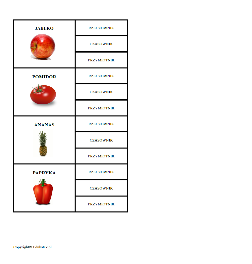 • doskonalenie części mowy (rzeczownik, czasownik, przymiotnik)