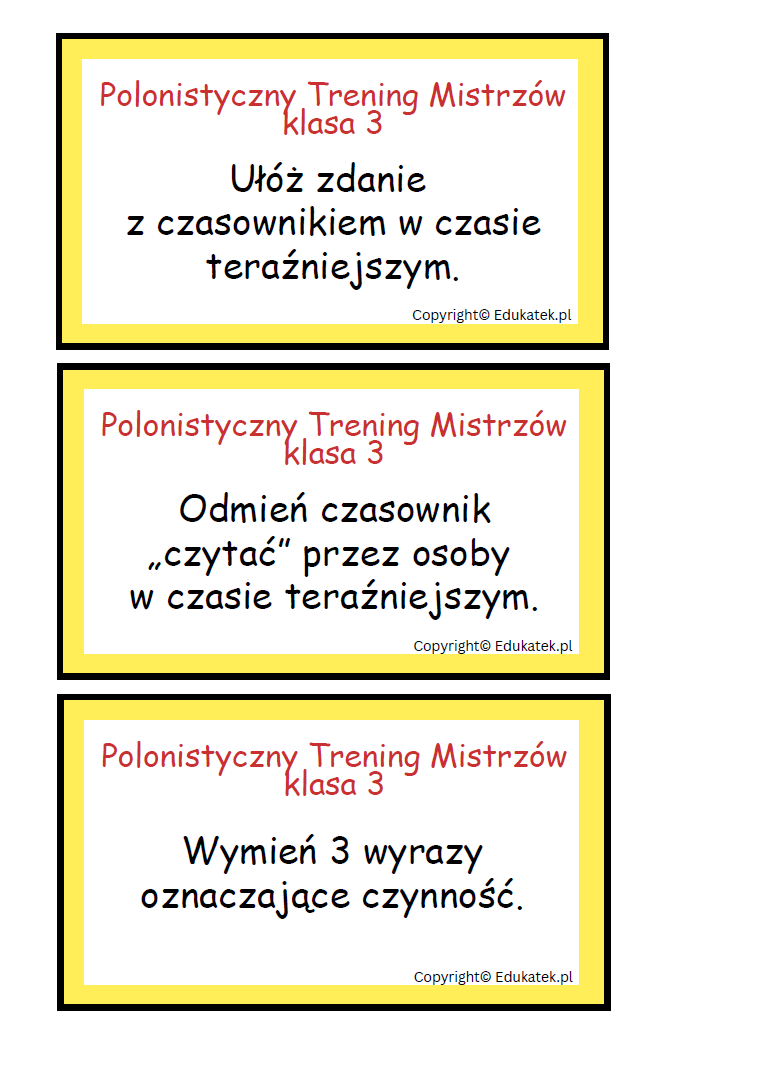 Zestaw kart powtórzeniowych, który w atrakcyjny sposób utrwala najważniejsze treści z edukacji polonistycznej w klasie 3. Materiał pozwala systematycznie ćwiczyć gramatykę, ortografię, budowę zdań oraz czytanie ze zrozumieniem poprzez krótkie, konkretne zadania w formie quizu.