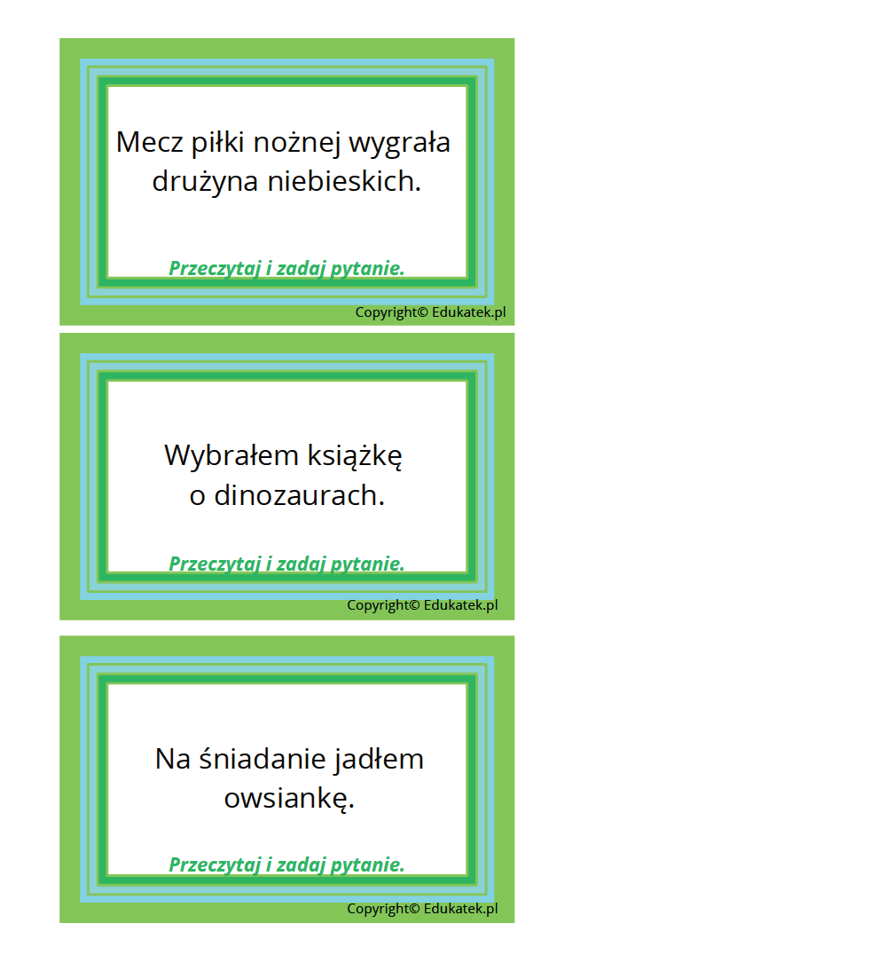 - rozwija umiejętność zadawania pytań oraz precyzyjnego odpowiadania na nie.