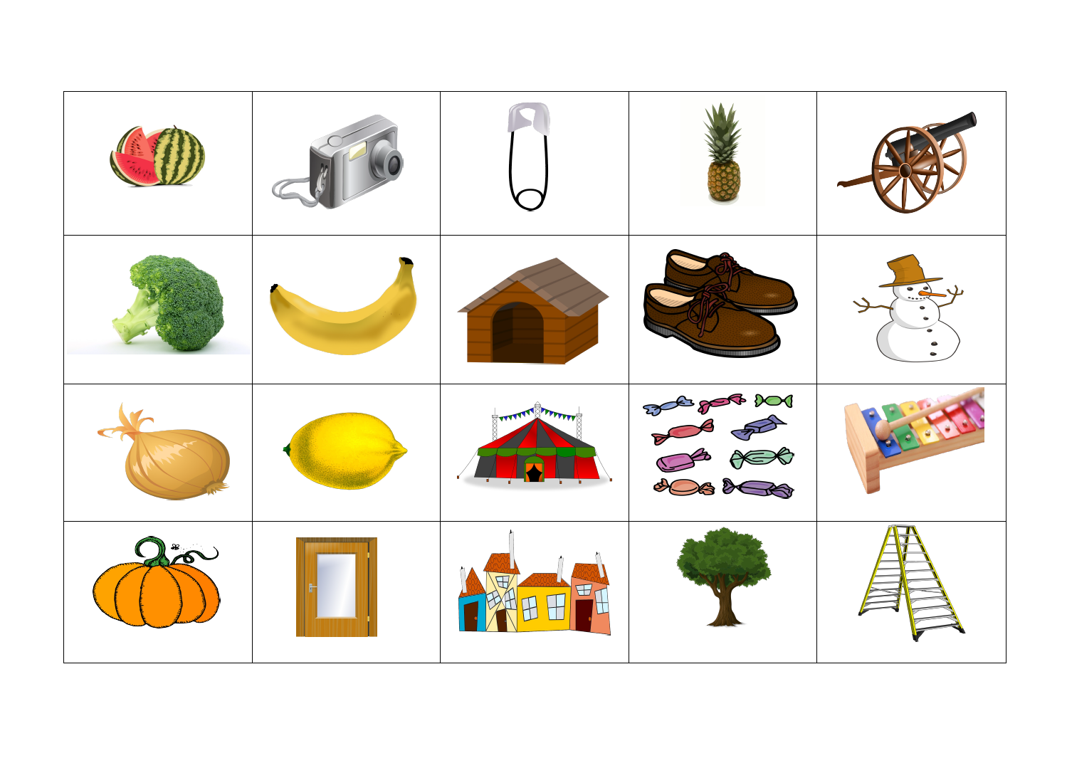 Praca w zespołach kilkuosobowych. Kartoniki z obrazkami układamy przed dziećmi. Nauczyciel lub wybrane dziecko nazywa obrazek, a zadaniem dzieci jest jak najszybsze wskazanie wagonika z właściwą literą.