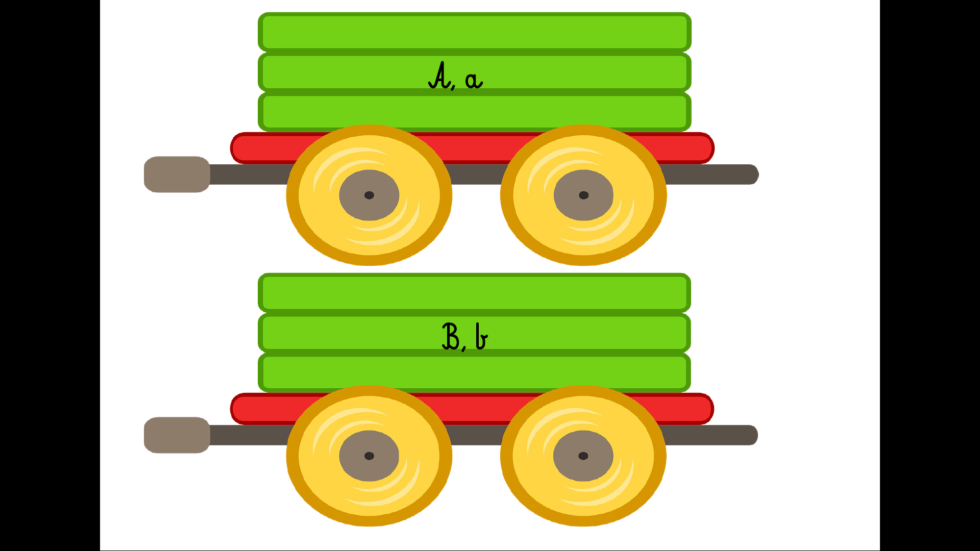 Gra edukacyjna – zestaw elementów doskonalący analizę i syntezę słuchową oraz utrwalający naukę czytania. Podczas zabawy dzieci utrwalają naukę czytania. W skład zestawu wchodzi 19 stron – 120 obrazków (po 5 na każdą literę alfabetu), 1 lokomotywa oraz 24 karty z wagonami, na których są napisane poszczególne litery alfabetu.