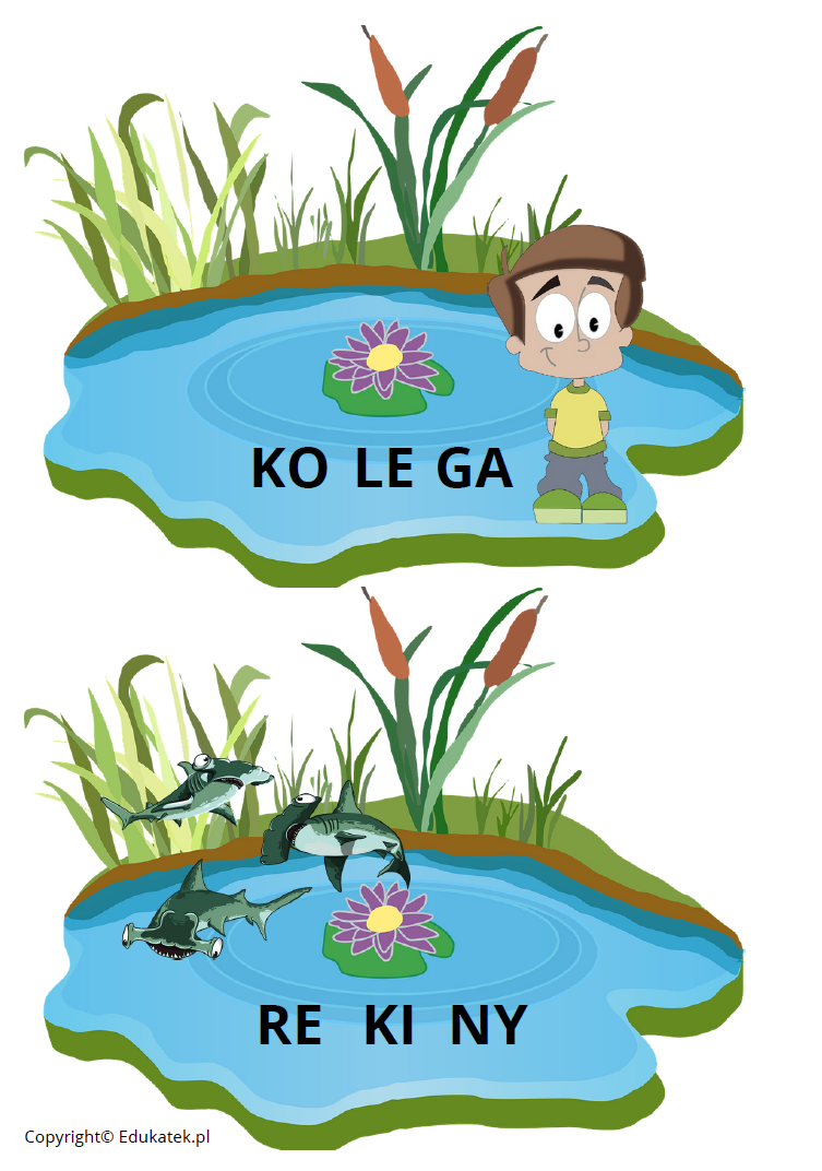 wersja prostsza – dziecko odczytuje wyraz z rozsypanki sylabowej i odszukuje właściwy wyraz wraz z odpowiednią ilustracją