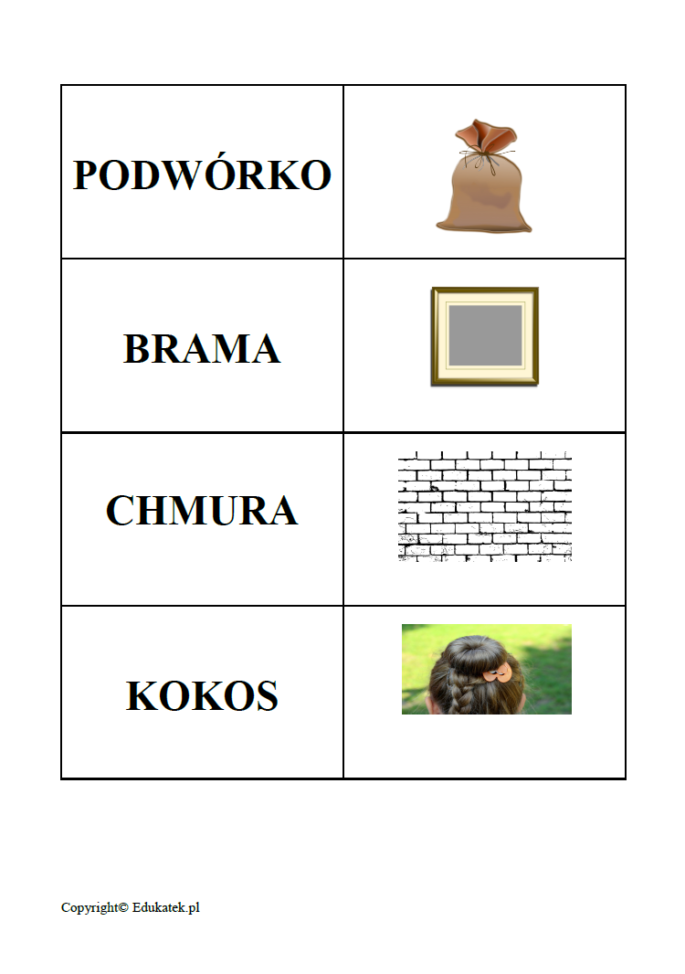 Ukryte wyrazy – utrwalanie czytania, zabawy słuchowe