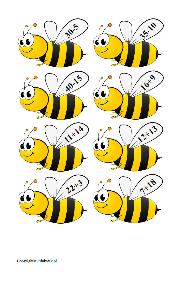 Gra matematyczna – zestaw elementów umożliwiający doskonalenie dodawania i odejmowania. Podczas zabawy dzieci doskonalą dodawanie i odejmowanie w zakresie 100. W skład zestawu wchodzi 8 słoików miodu z wynikami oraz 96 pszczół z działaniami. Do każdego miodu należy przyporządkować 12 działań.