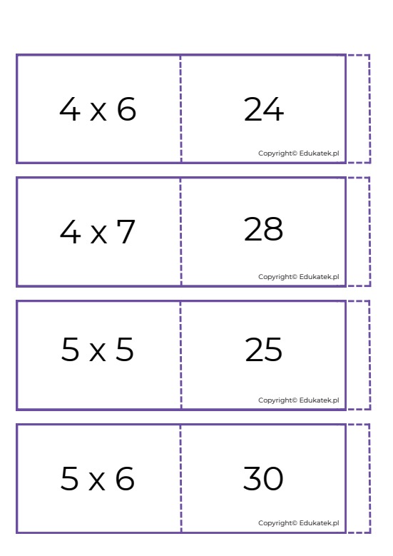 - utrwalanie tabliczki mnożenia w zakresie 20, 30, 50 oraz 100