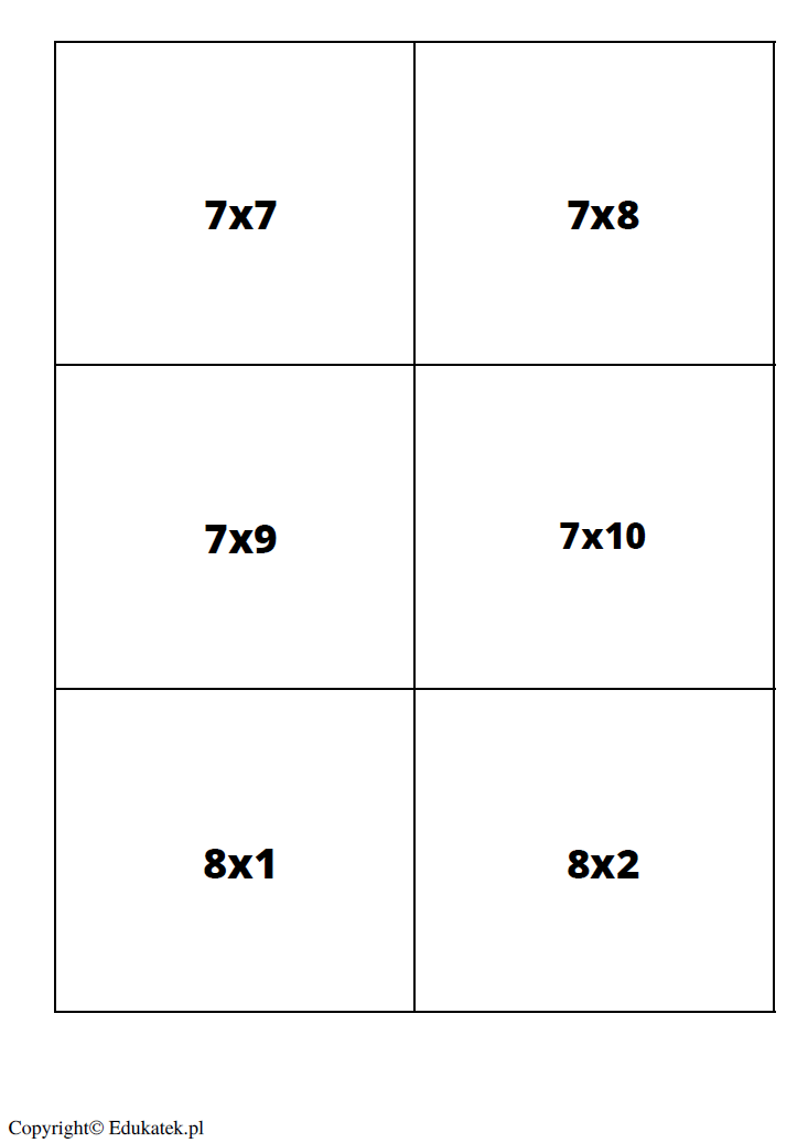 • Jeśli utrwalacie tabliczkę mnożenia w zakresie 30 to można wydrukować tylko kartoniki z działaniami do 30 oraz właściwe wyniki w tym zakresie.