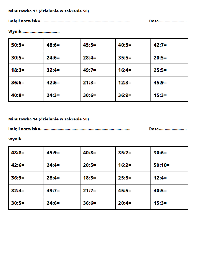 Trening dzielenia – zestaw kart umożliwiający doskonalenie dzielenia.