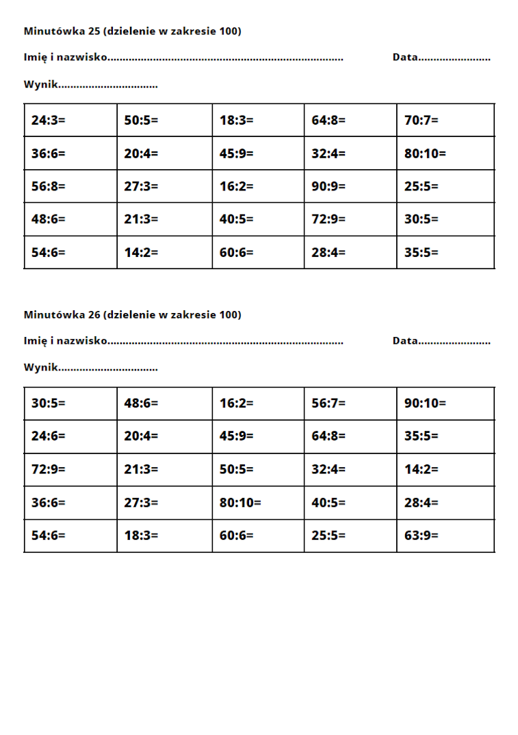 Podczas pracy z wykorzystaniem tych gier matematycznych dzieci doskonalą dzielenie w zakresie 30, 50 oraz 100. W skład zestawu wchodzi 15 kart do samodzielnego wydrukowania.
