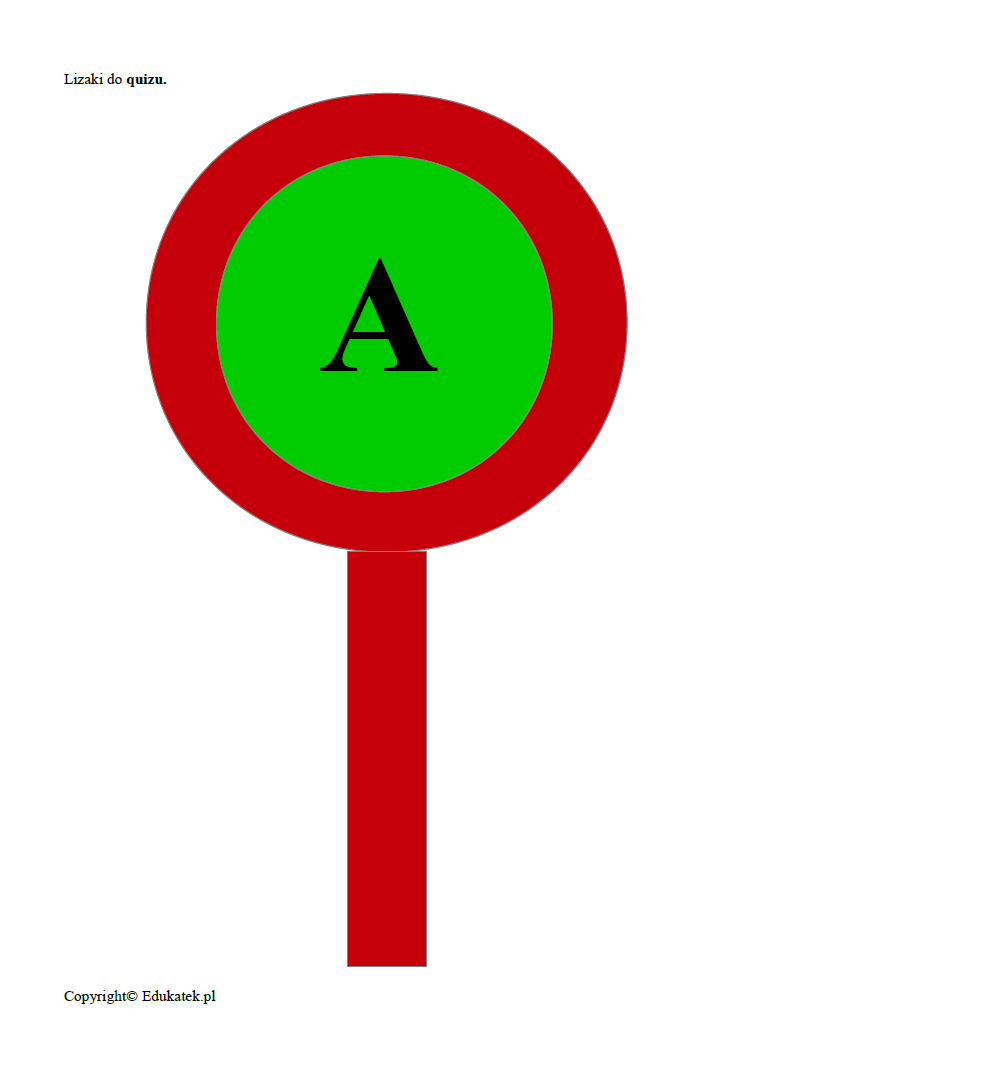 W zestawie znajduje się opis 12 zabaw oraz quiz wraz z lizakami, na których są odpowiedzi „A”, „B”.