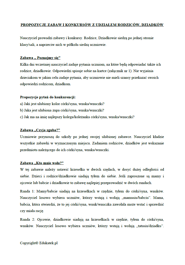 Zabawy i konkursy na „Dzień Rodziny”,, „Dzień Babci i Dziadka” – zestaw pomocy, które ułatwią pracę każdemu nauczycielowi.